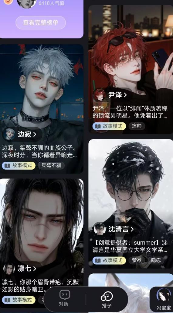 绝大多数AI陪聊软件,因为盈利与版权之类的问题,会规避已有的动漫角色,绝大多数是原创人设加AI立绘(虽然有的看上去既视感满满),但可能因为有版权背书,所以你能看到不少高人气漫画角色出现。